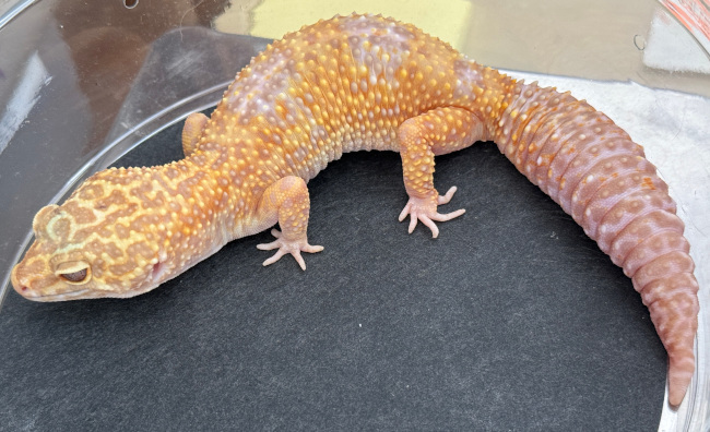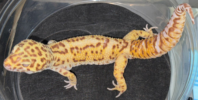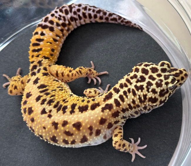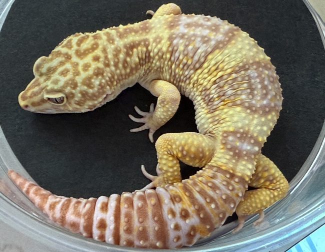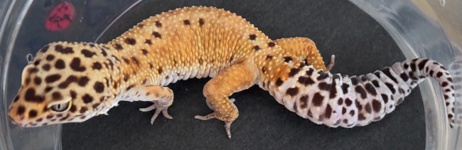 Over the last 3 years I have done additional testing of this genetic, reviewed my original breeding records from 20 years ago, and studied the historical account of this morph that was presented in my 2005 book. Given these findings and the results of others, it is my best judgment, that our famous giant leopard gecko, Moose, and his resulting descendants are the result of a recessive gene. The term ‘Super Giant’ shall still apply based on adult weight, while the term ‘Giant’ no longer applies.