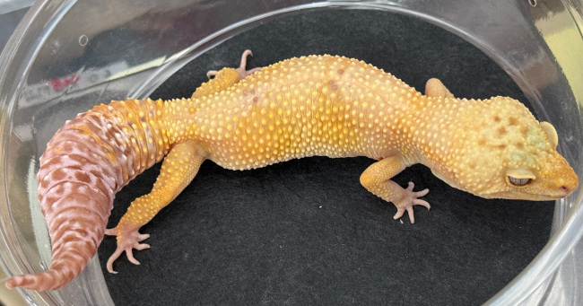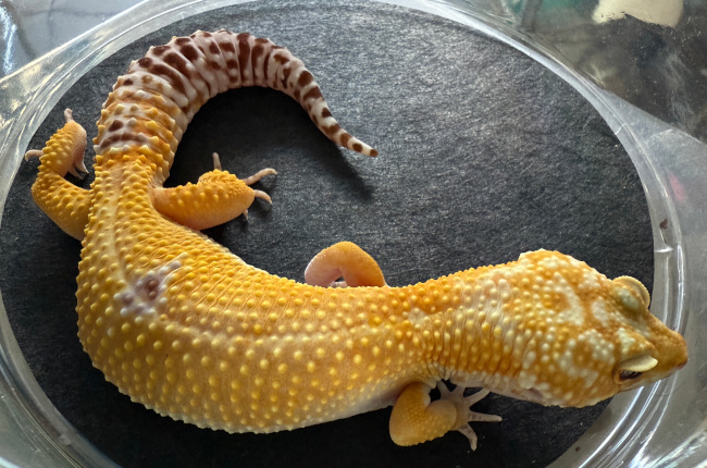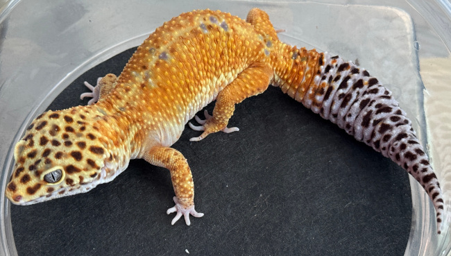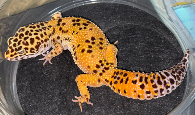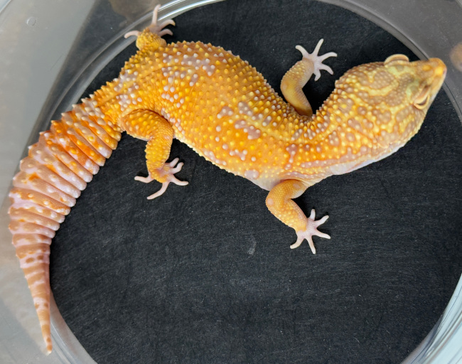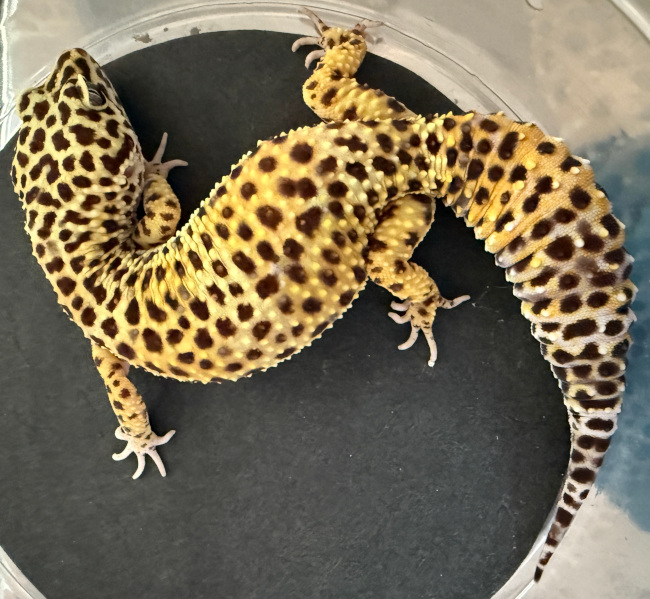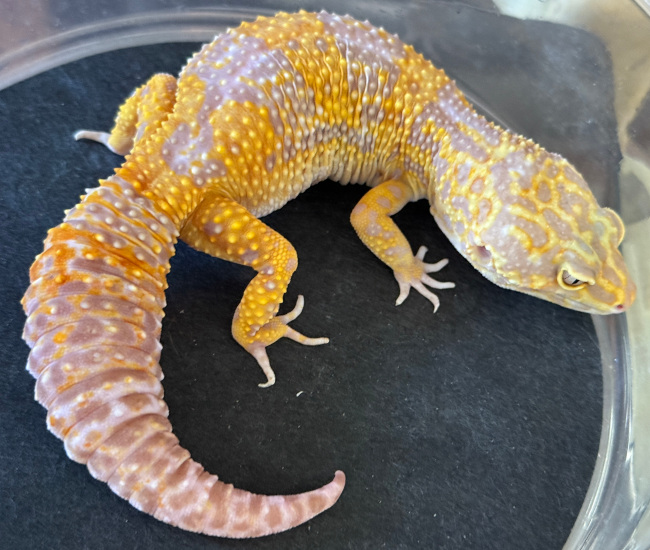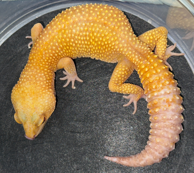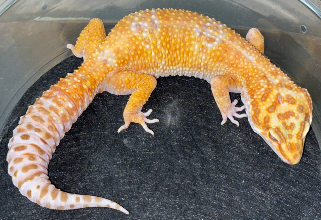 Over the last 3 years I have done additional testing of this genetic, reviewed my original breeding records from 20 years ago, and studied the historical account of this morph that was presented in my 2005 book. Given these findings and the results of others, it is my best judgment, that our famous giant leopard gecko, Moose, and his resulting descendants are the result of a recessive gene. The term ‘Super Giant’ shall still apply based on adult weight, while the term ‘Giant’ no longer applies.